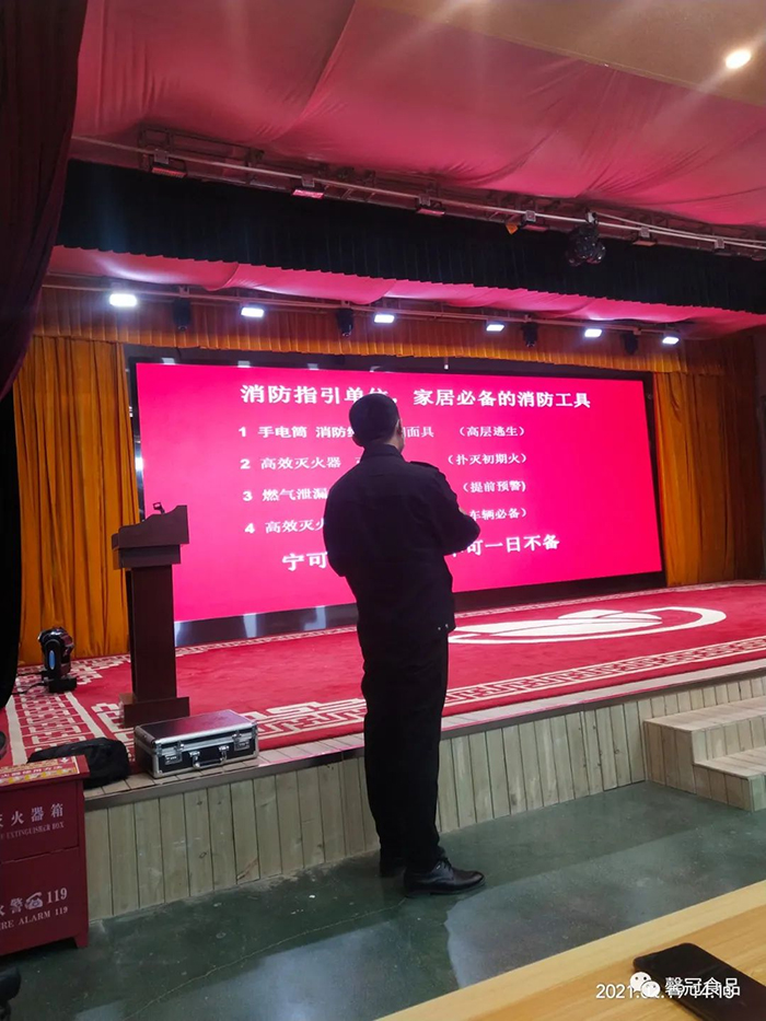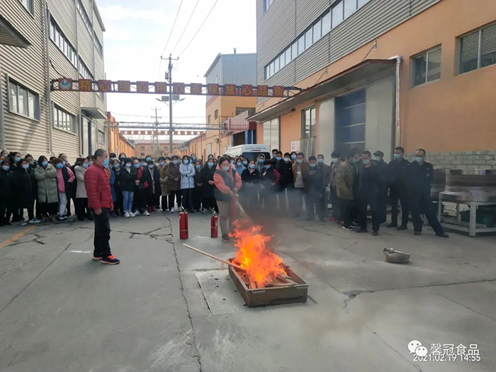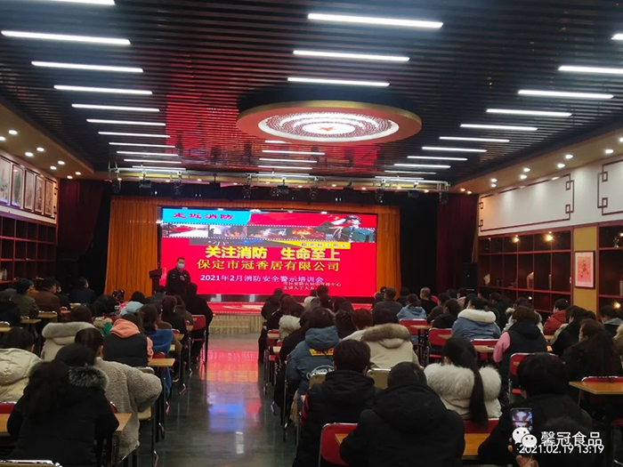 開工在即,為了增強員工消防安全意識,提高員工檢查、消除隱患的能力、撲滅初期火災(zāi)的能力以及火場逃生和引導(dǎo)疏散的能力,保定馨冠食品有限公司、保定市冠香居食品有限公司于2021年2月19日在公司文化館會議大廳召開“2021年消防安全培訓(xùn)大會”。