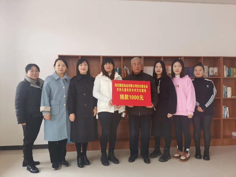 滿城區(qū)婦聯(lián)倡導(dǎo)愛心企業(yè)支持兒童友好鄉(xiāng)村文化建設(shè)。2021年11月19日,保定馨冠食品有限公司婦女聯(lián)合會(huì)在世界兒童日之際,到滿城區(qū)神星鎮(zhèn)魏莊村捐助“公益書屋”現(xiàn)金1000元,為孩子們送去了冬日里最溫暖的禮物。