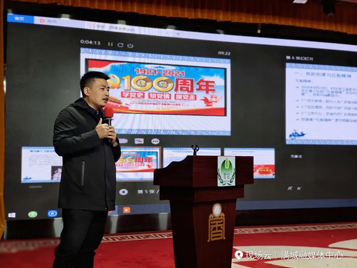 上圖為 保定市廣播電視報(bào)社黨支部書(shū)記劉賀田老師講《為什么選擇了共產(chǎn)黨》